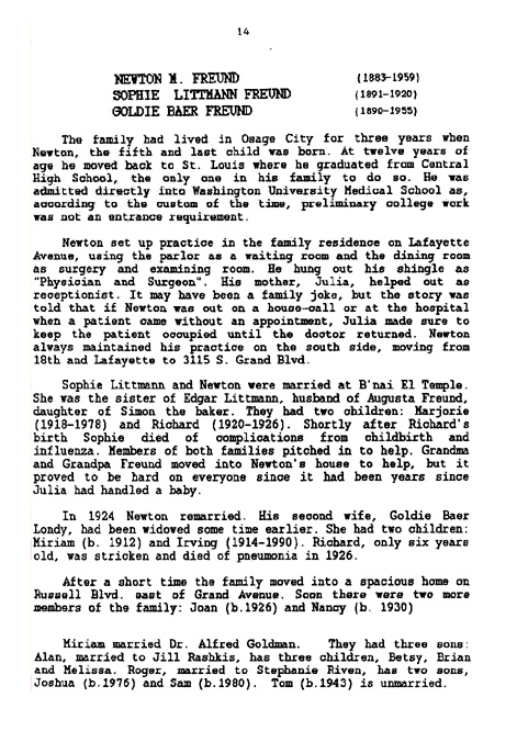 | Newton M. Freund (1883-1959) / Sophie Littman Freund (1891-1920) / Goldie Baer Freund (1890-1955) |