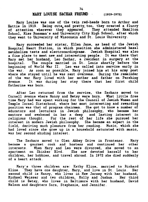 | Mary Louise Sachar Freund (1919-1972) |